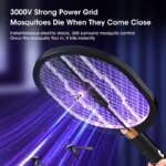 Choque Eléctrico 3000V:Raqueta electrica para mosquitos elimina plagas instantáneamente, efectiva para atrapar mosquitos en interiores y exteriores.